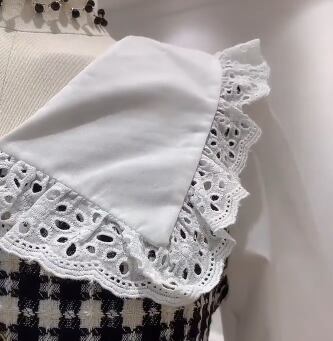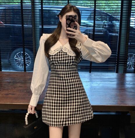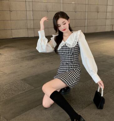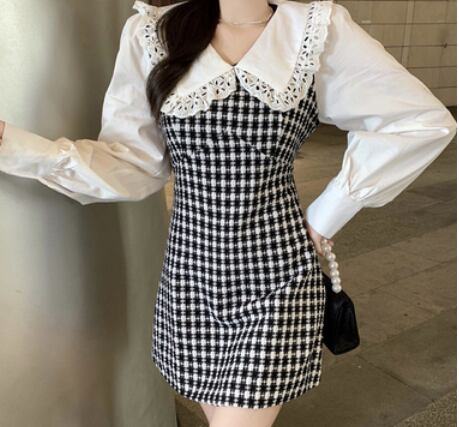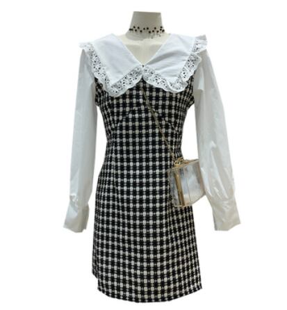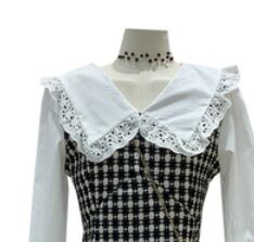 大きな襟がかわいい切替えデザインのワンピースです。