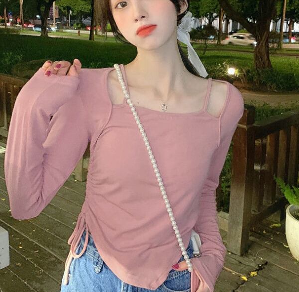 ショート丈デザイン長袖カットソー トップス 袖あり 長袖 個性的 大人スタイル かわいい 大人可愛い きれいめ シンプル 大人 上品 おしゃれ かっこいい 大人可愛い 大人女子 こなれ感 白 ピンク 黒 無地 春 秋 10代 20代 30代 40代 50代 60代 レディース ママ 女の子 オフィス ビジネス OL 通勤 学生 通学 デート お出かけ 女子会 イベント 着回し 普段使い ファッション コーデ スタイル デート モテ プレゼント 流行 インスタ映え タイト