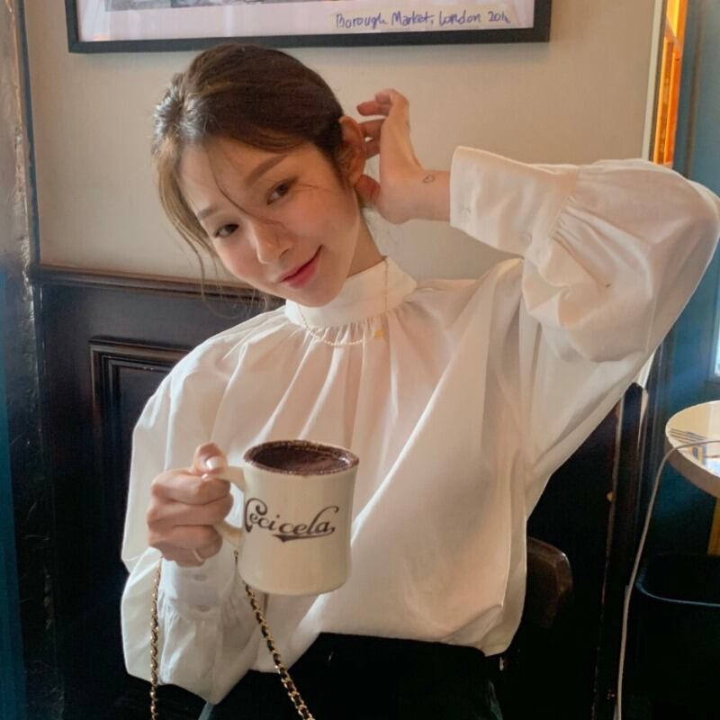 長袖ブラウス トップス シャツ ブラウス 袖あり 長袖 ハイネック かわいい 大人可愛い きれいめ シンプル カジュアル 大人 上品 おしゃれ お洒落 大人可愛い 大人女子 こなれ感 ラフ キュート ガーリー モダン 主役級 存在感 無地 春 秋 10代 20代 30代 レディース オフィス ビジネス OL 通勤 学生 通学 デート お出かけ 女子会 休日 着回し 普段使い 重ね着 色展開 白 ホワイト