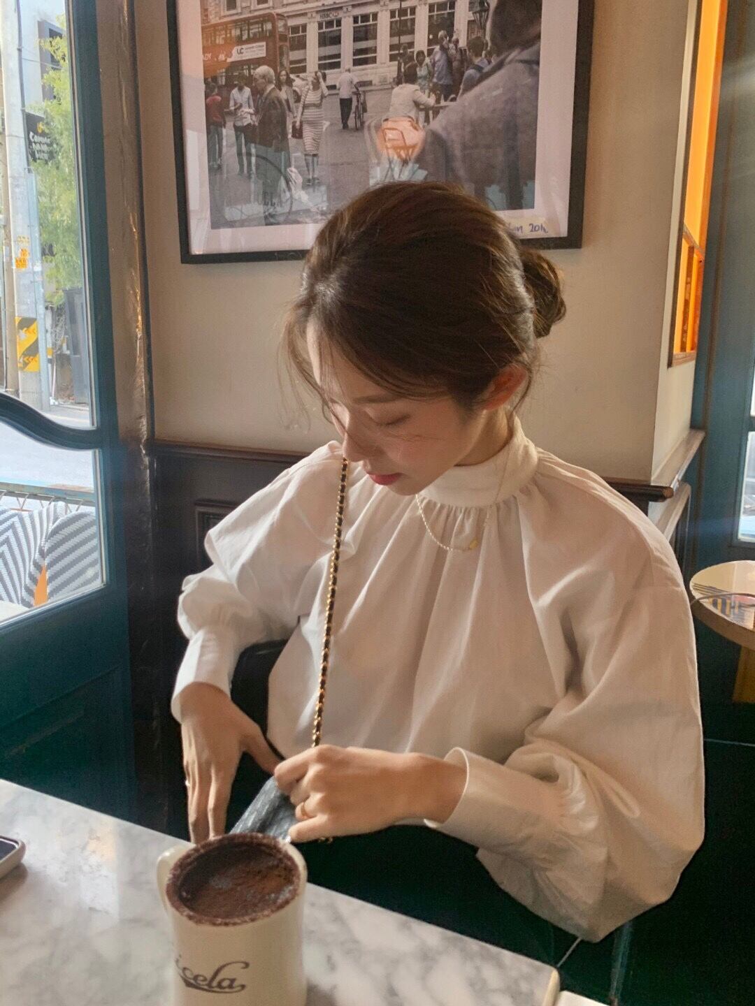 ボリュームのある袖が女性らしさを演出。