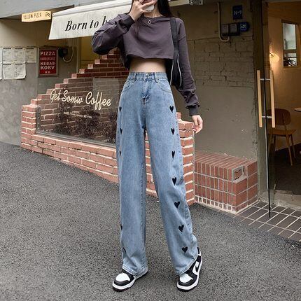 サイドのハート刺繍が個性的なデニムパンツ。