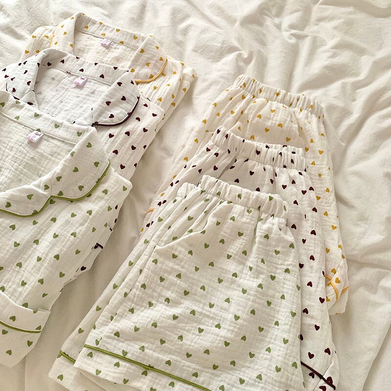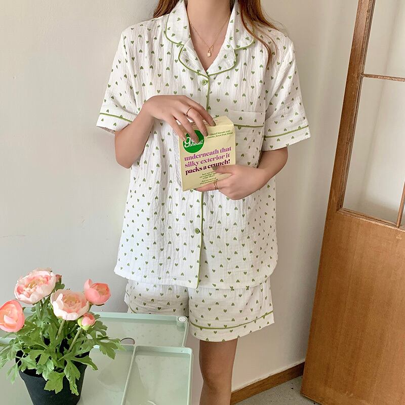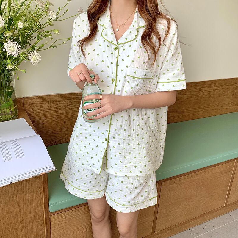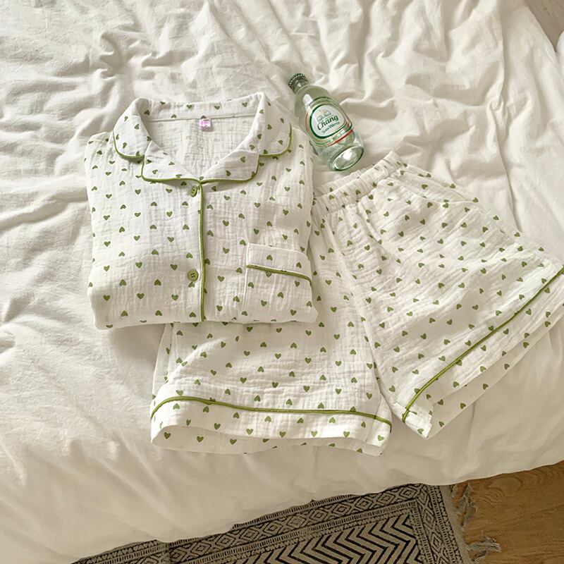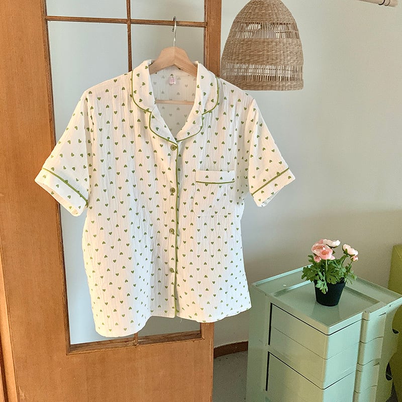 ミニマルなハートを散りばめた半袖パジャマ。