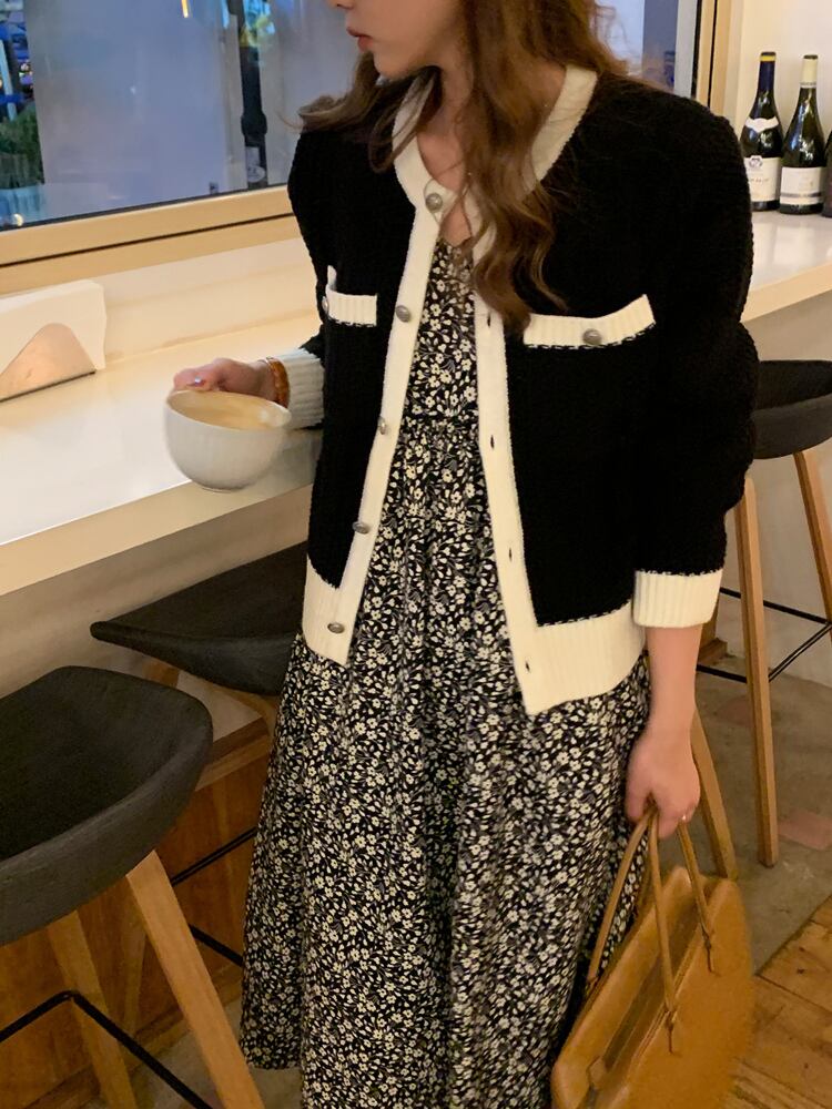 ガーリーなデザインのバイカラーカーディガン。