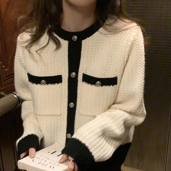 バイカラーカーディガン トップス カーディガン 袖あり 長袖 ラウンドネック 前開き かわいい 大人可愛い きれいめ シンプル カジュアル 大人 上品 おしゃれ お洒落 大人可愛い 大人女子 こなれ感 ラフ キュート ガーリー モダン 主役級 存在感 無地 春 秋 冬 10代 20代 30代 レディース OL 通勤 学生 通学 デート お出かけ 公園デビュー 女子会 休日 着回し 普段使い 重ね着 韓国系 オルチャン サイズ S M L XL 2XL 色展開 白 ホワイト 黒 ブラック