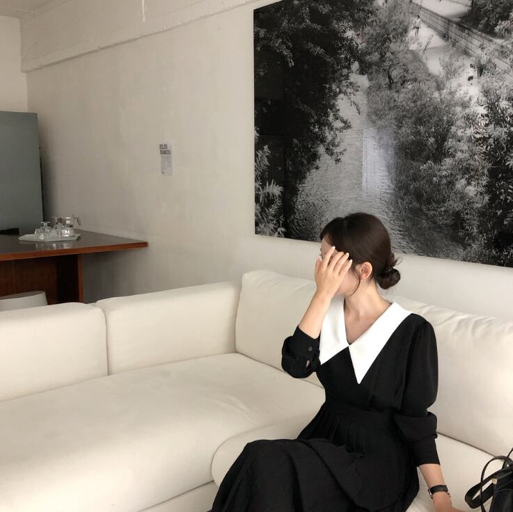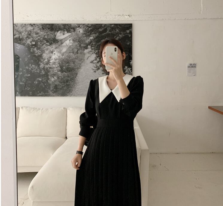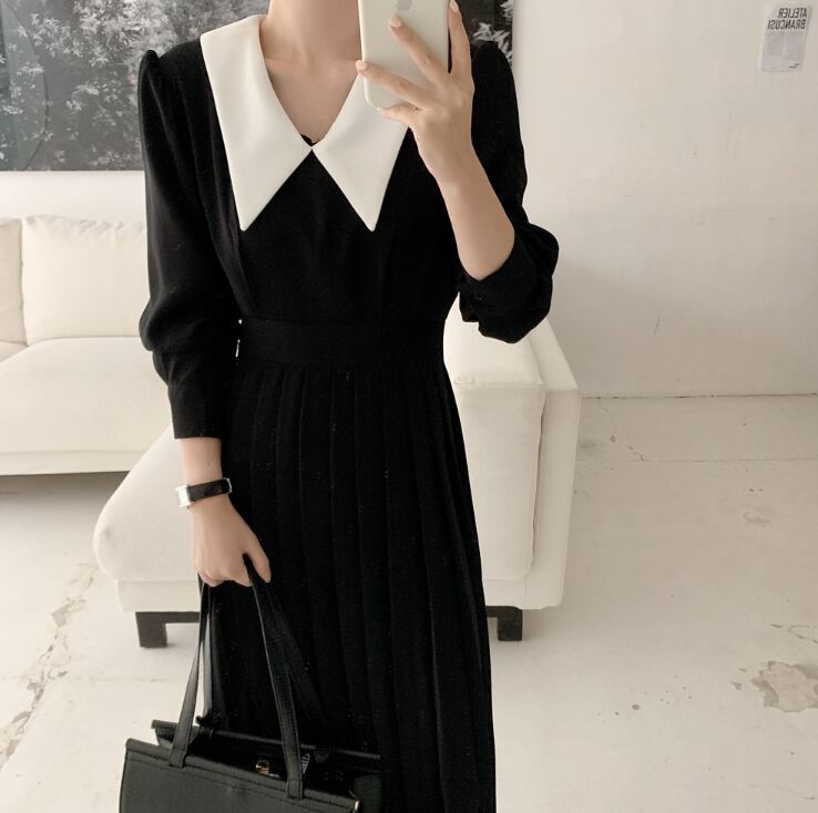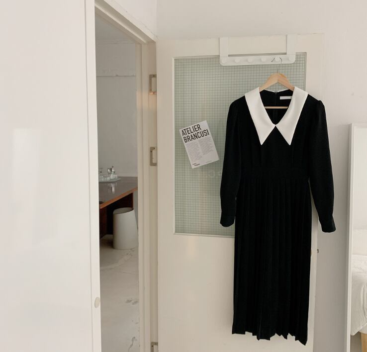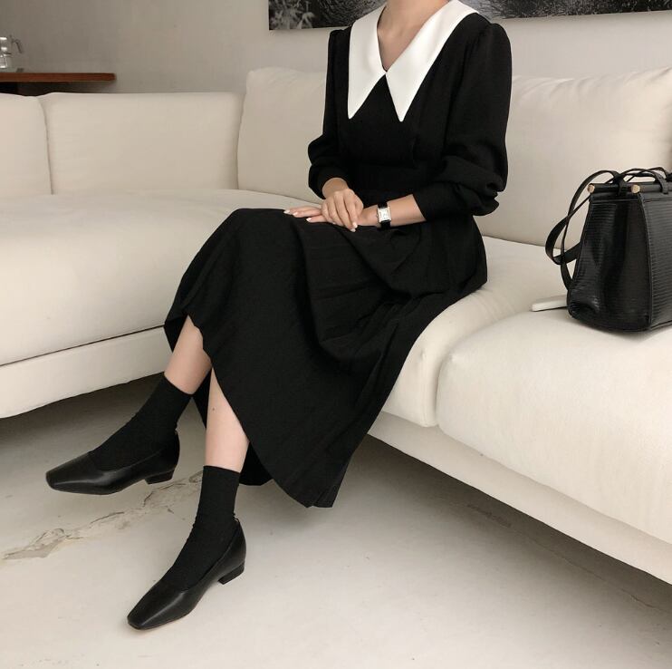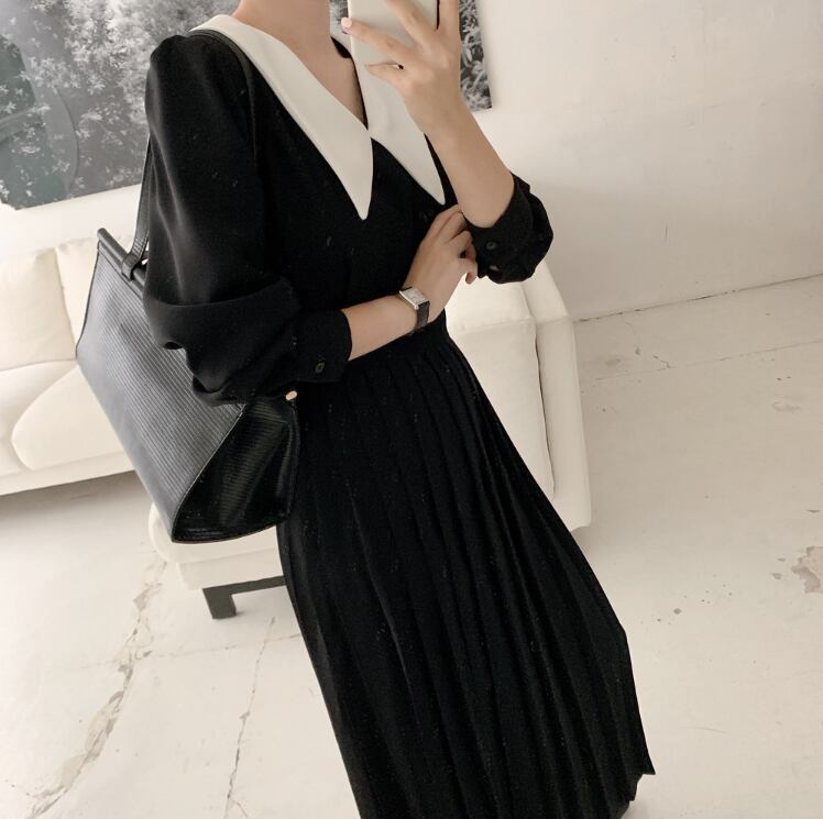 襟付きワンピース ワンピース フレアワンピース ワンピドレス ミモレ ミモレ丈 ロング ロング丈 袖あり 長袖 Vネック 襟付き フレア Aライン プリーツ 切り替えデザイン ハイウエスト かわいい 大人可愛い きれいめ シンプル カジュアル 大人 上品 おしゃれ お洒落 レトロ 大人可愛い 大人女子 こなれ感 ラフ キュート ガーリー モダン 主役級 存在感 無地 春 秋 10代 20代 30代 レディース OL 通勤 学生 通学 デート お出かけ 公園デビュー 女子会 休日 着回し 普段使い 重ね着
