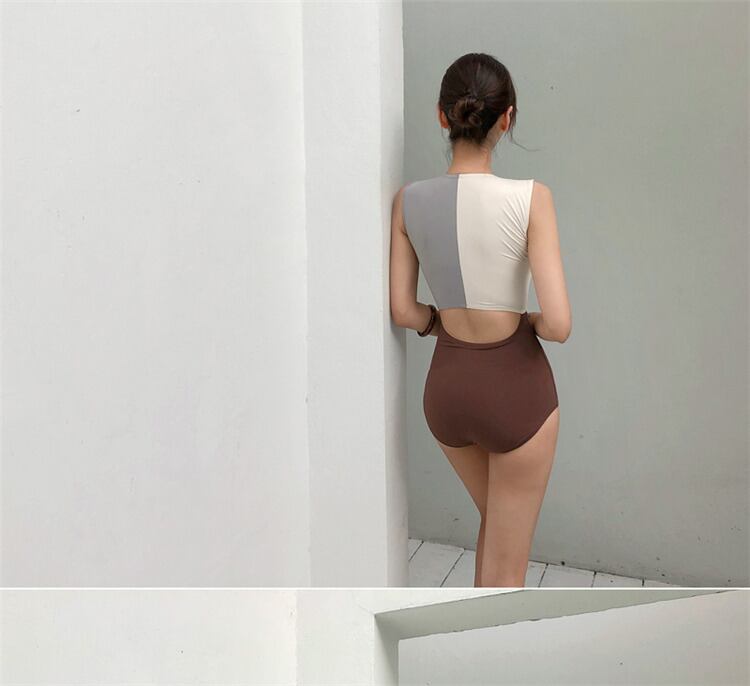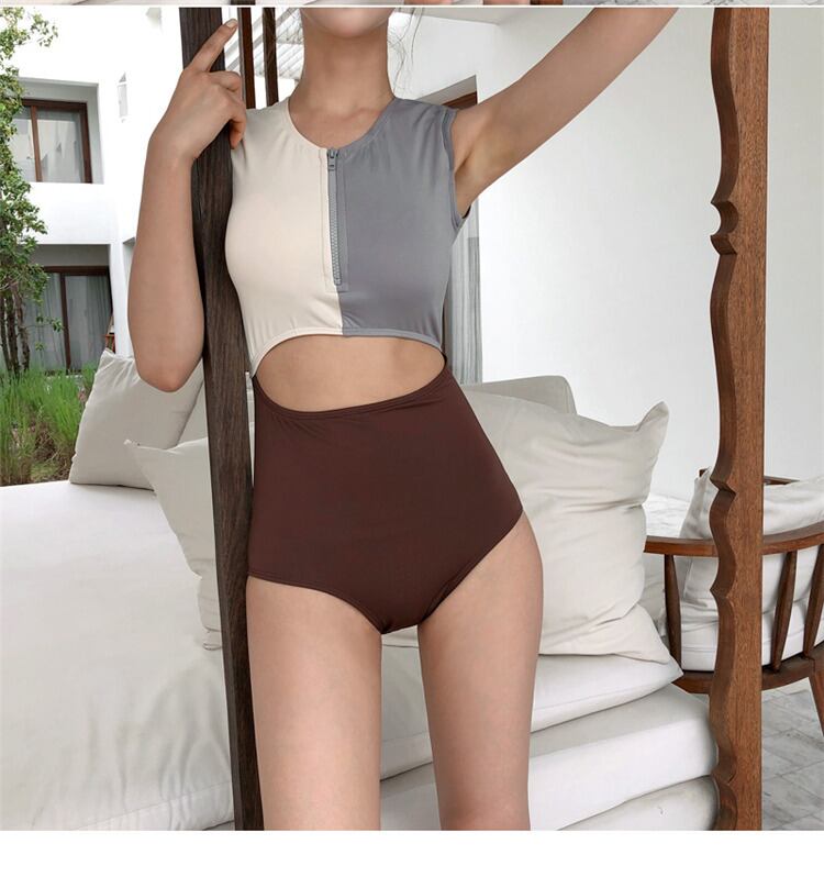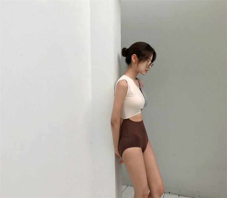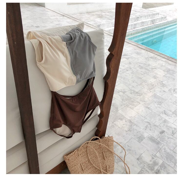 水着女子セクシーリゾートスパ薄い 水着 ワンピース水着 ノースリーブ Uネック ストレート 切り替えデザイン ドッキング 切り替えデザイン ドッキング ハイウエスト 大人可愛い シンプル カジュアル 大人 おしゃれ 大人女子 キュート セクシー 無地 夏 10代 20代 レディース OL 学生 休日 旅行 海 プール M L XL ブラウン
