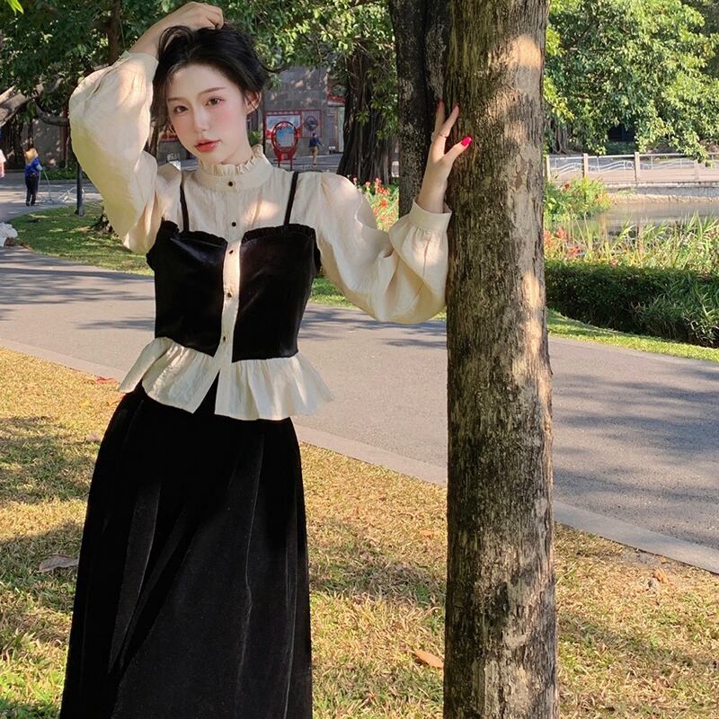 大きなサイズトップス春秋ドレスぽっちゃりストリートシックシャツ トップス スカート シャツ ロングスカート ミディアム丈 長袖 ボリューム袖 ハイネック 切り替えデザイン ドッキング ハイウエスト 大人可愛い きれいめ シンプル カジュアル 大人 おしゃれ レトロ 大人女子 こなれ感 ラフ キュート ガーリー 無地 春 10代 20代 30代 レディース OL 通勤 学生 通学 お出かけ 女子会 お泊まり 休日 旅行 着回し 普段使い L XL 2XL 3XL 4XL ブラウン