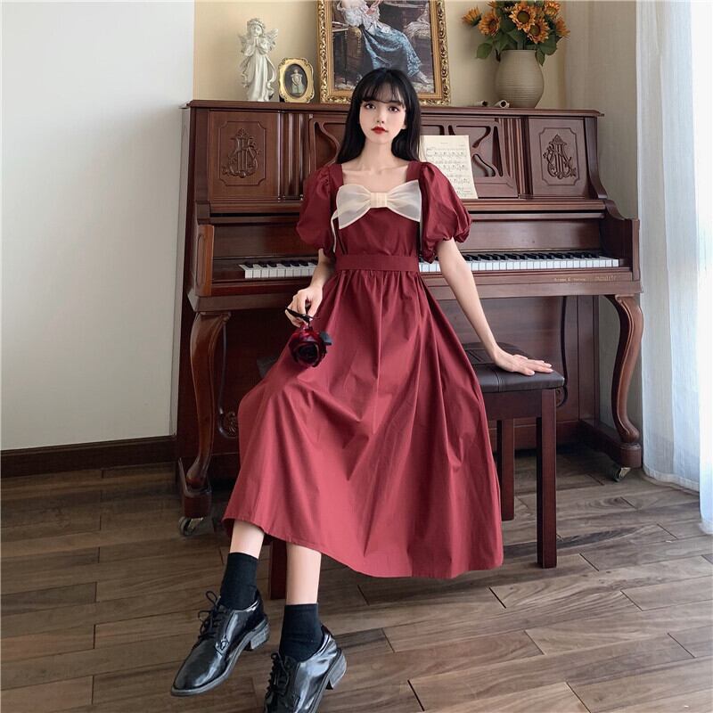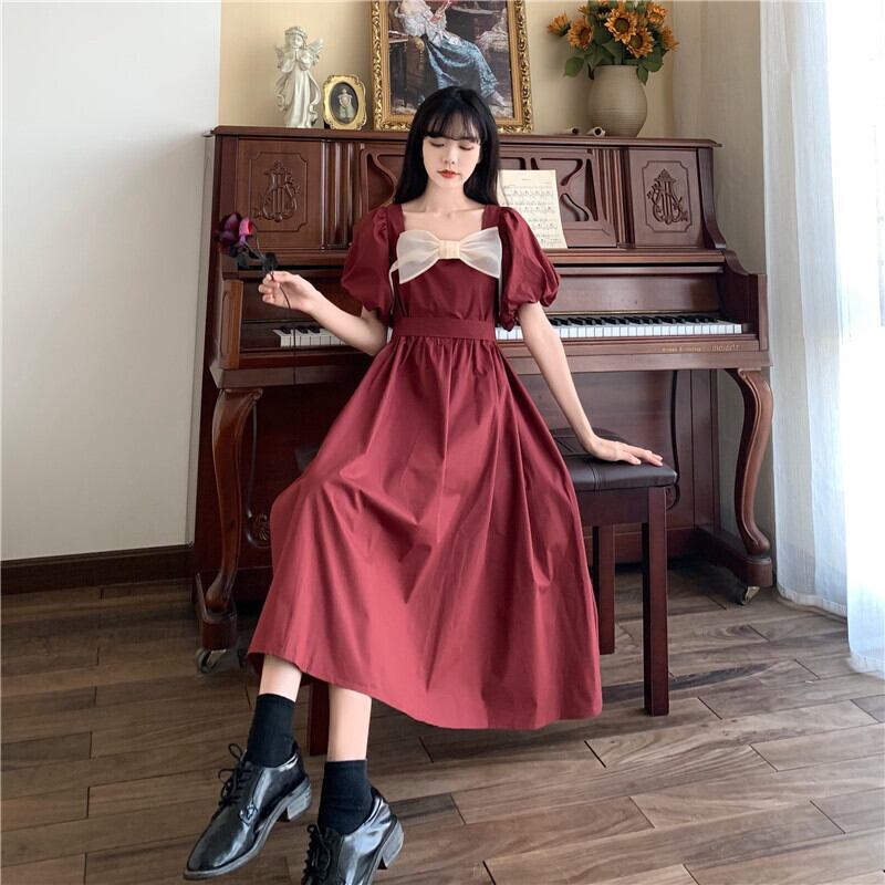 パフスリーブワンピース ワンピース フレアワンピース ワンピドレス 膝丈 ひざ丈 袖あり 半袖 パフスリーブ スクエアネック フレア Aライン リボン ハイウエスト かわいい 大人可愛い きれいめ シンプル カジュアル 大人 上品 おしゃれ お洒落 大人可愛い 大人女子 こなれ感 ラフ キュート ガーリー モダン 主役級 存在感 無地 春 夏 秋 10代 20代 30代 レディース 学生 通学 デート お出かけ 女子会 休日 運動 着回し 普段使い 重ね着 韓国系 オルチャン サイズ L XL