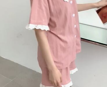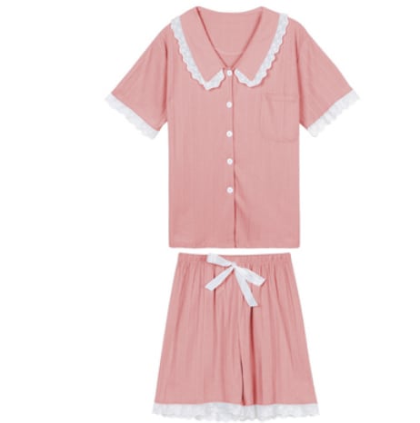 ピンク&フリルがかわいいルームウェアです。